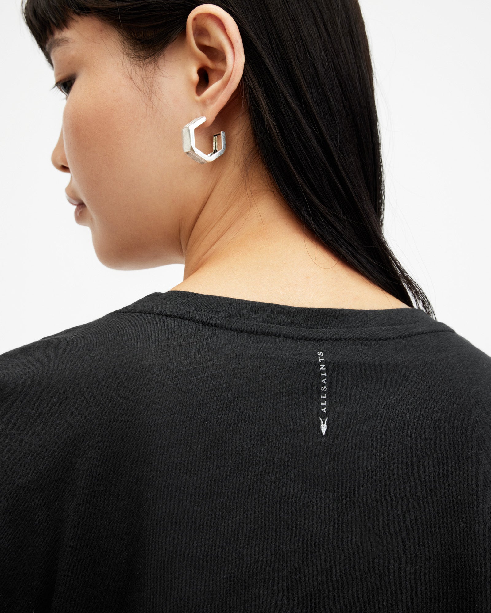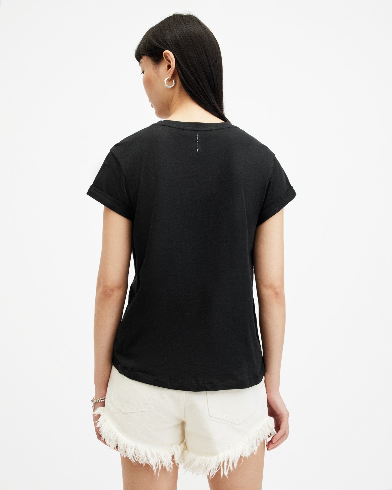 An easy piece, this is the Anna T-Shirt. Crafted from soft cotton, it's shaped to a regular silhouette. Featuring turned-up cuffs and our AllSaints signature on the back of the neck.