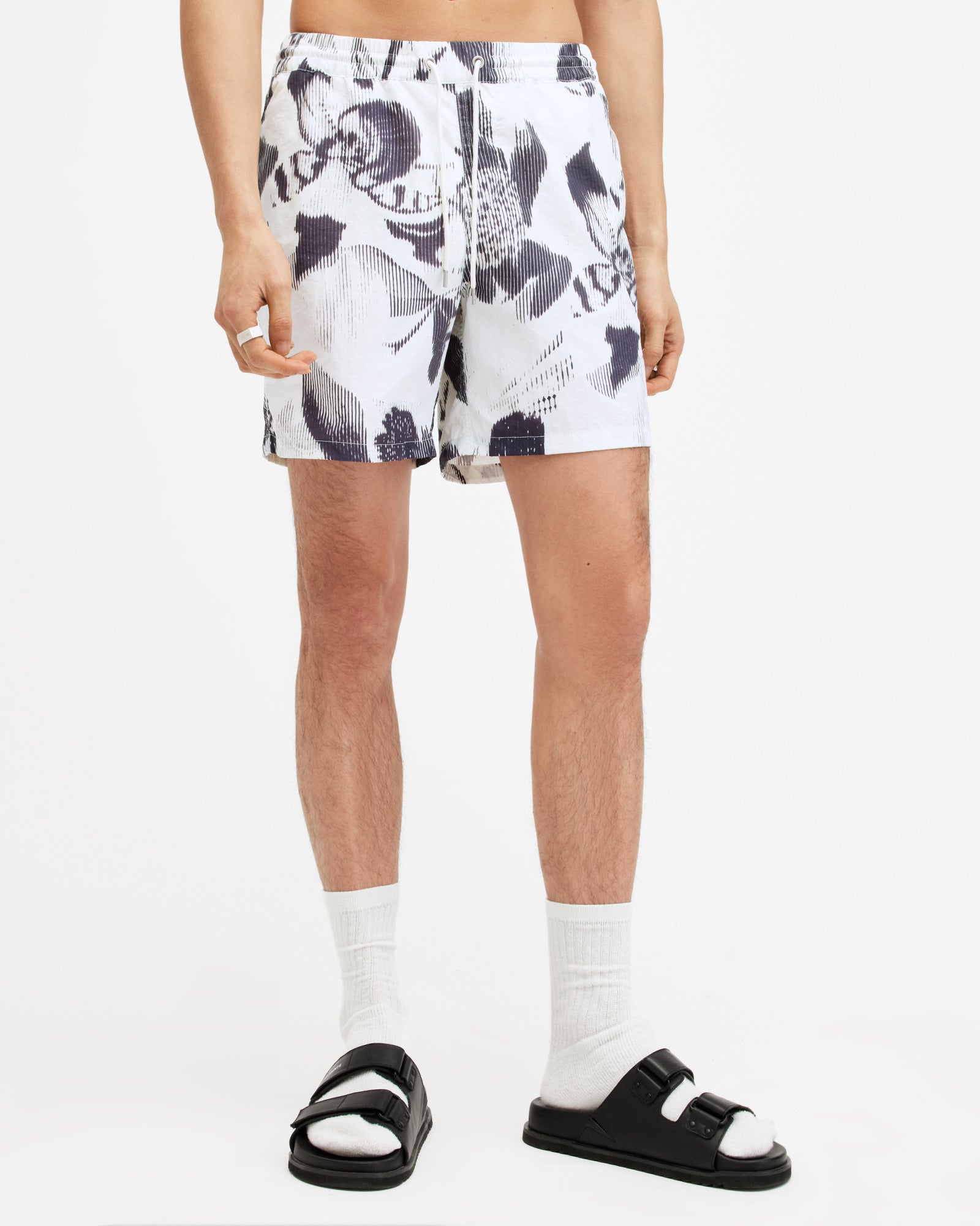 Dive into warmer weather with monochromatic florals. These are the Frequency Swim Shorts. They're made using recycled materials with an easy zip and popper closure.