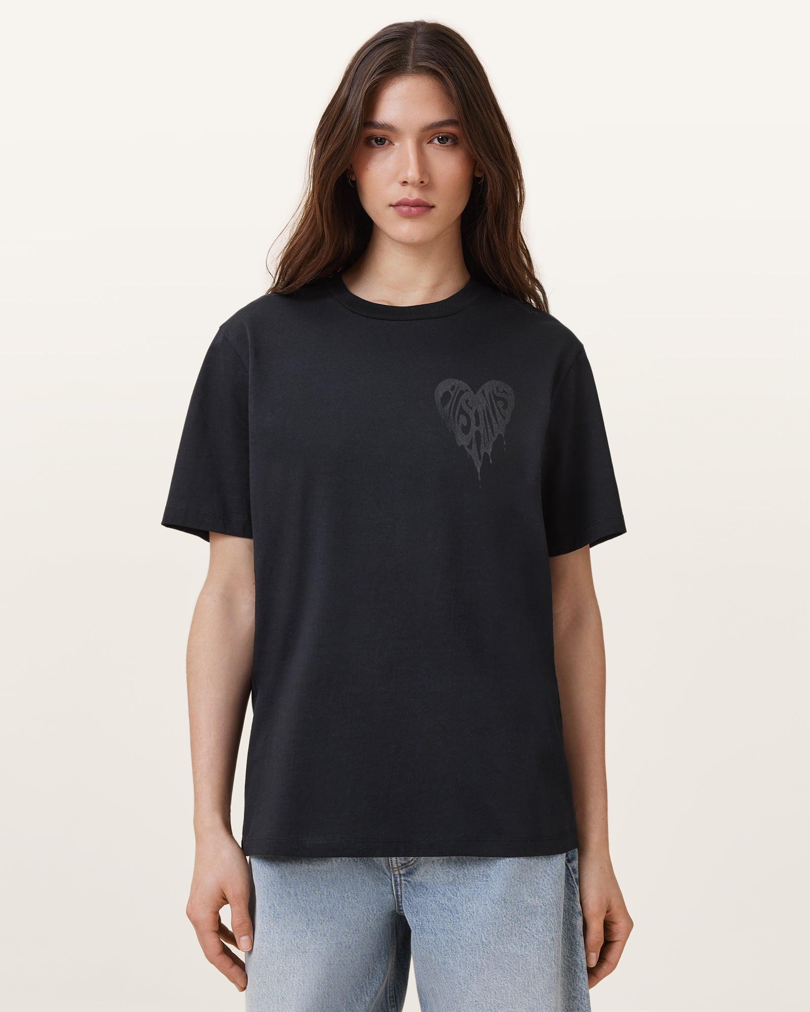 Who doesn't love a boyfriend tee? Our logo within a heartshape design shows we clearly do. Made with easy dressing in mind, this is a go-to for festival season. No matter who your crew is, being proud of who you are is AllSaints at our core - which is why our name is proudly embellished on this tee's back. Be proudly you, proudly unique - proudly AllSaints.