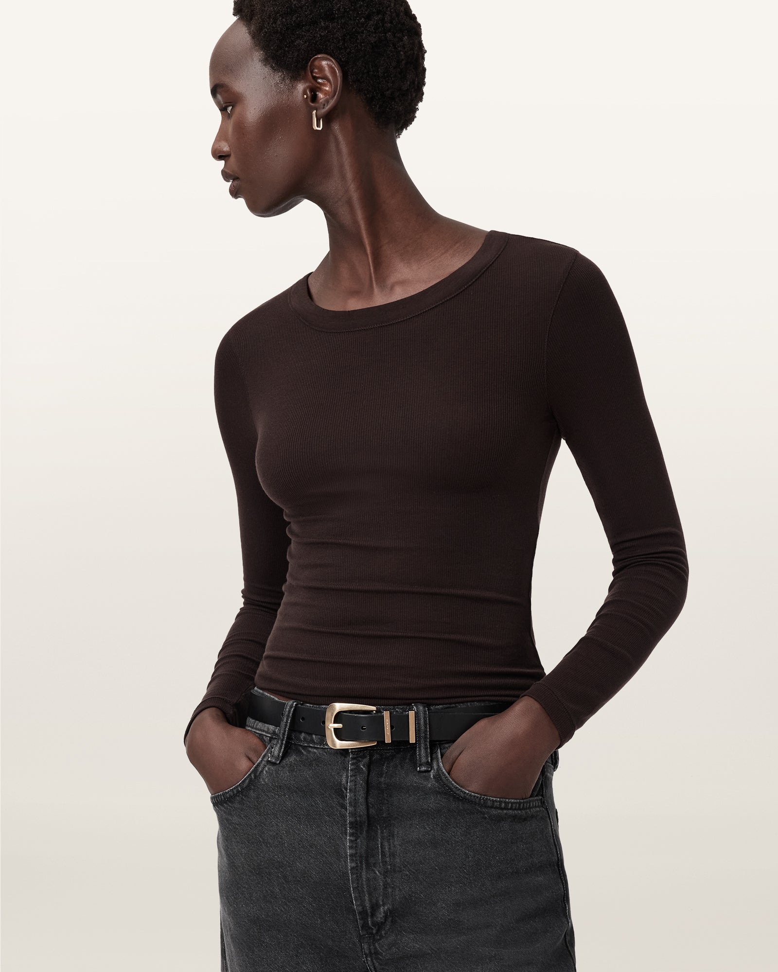 A wardrobe staple. The Rina Long Sleeve T-Shirt is super soft with a little bit of stretch. Shaped to an essential silhouette with a crew neck, we love to keep all the colours on rotation – it's a go-to piece.