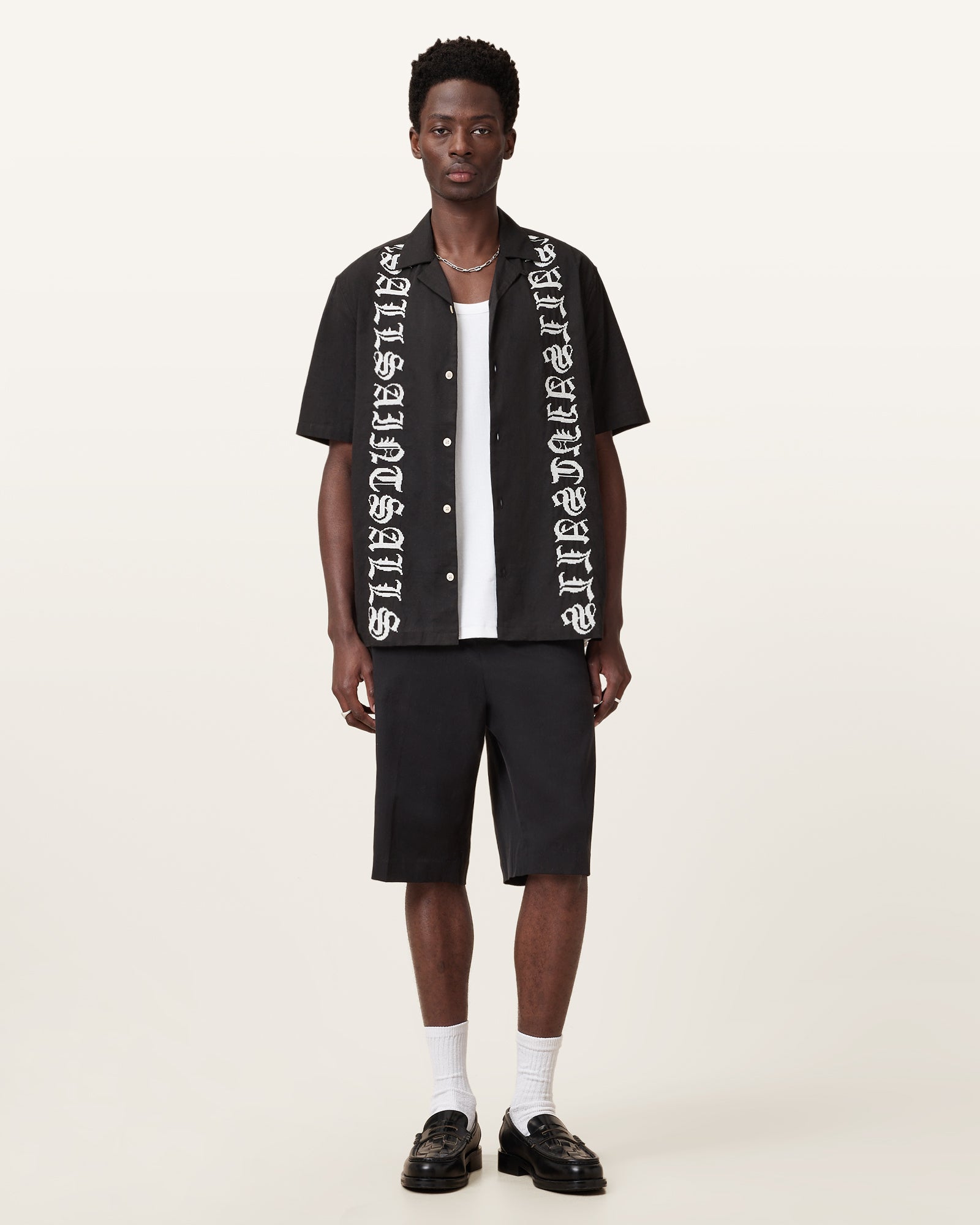 An AllSaints shirt unlike any other, this is the Scripture. Made from organic cotton that is slightly textured, this relaxed silhouette features our AllSaints gothic-inspired text embroidered down the front panels.