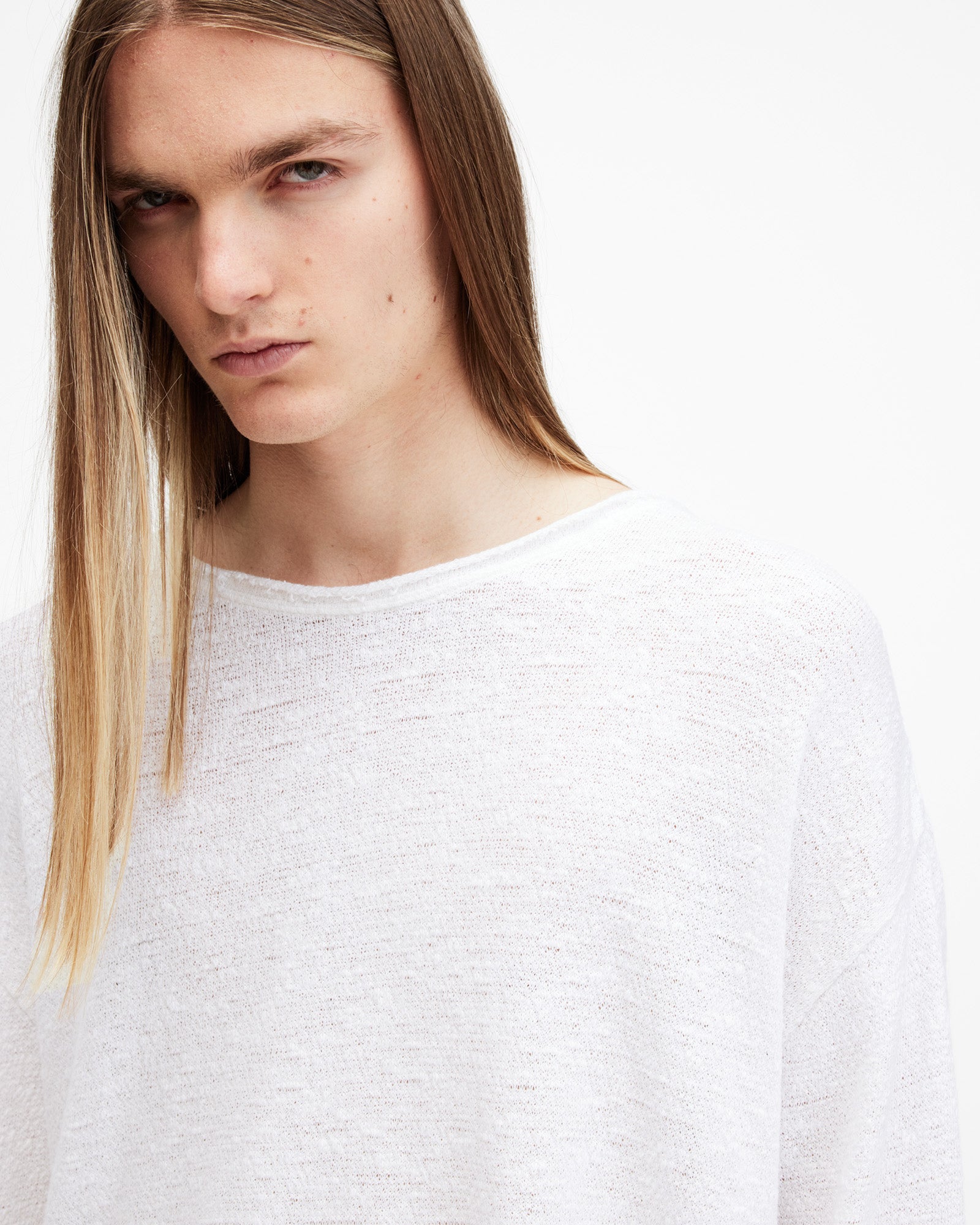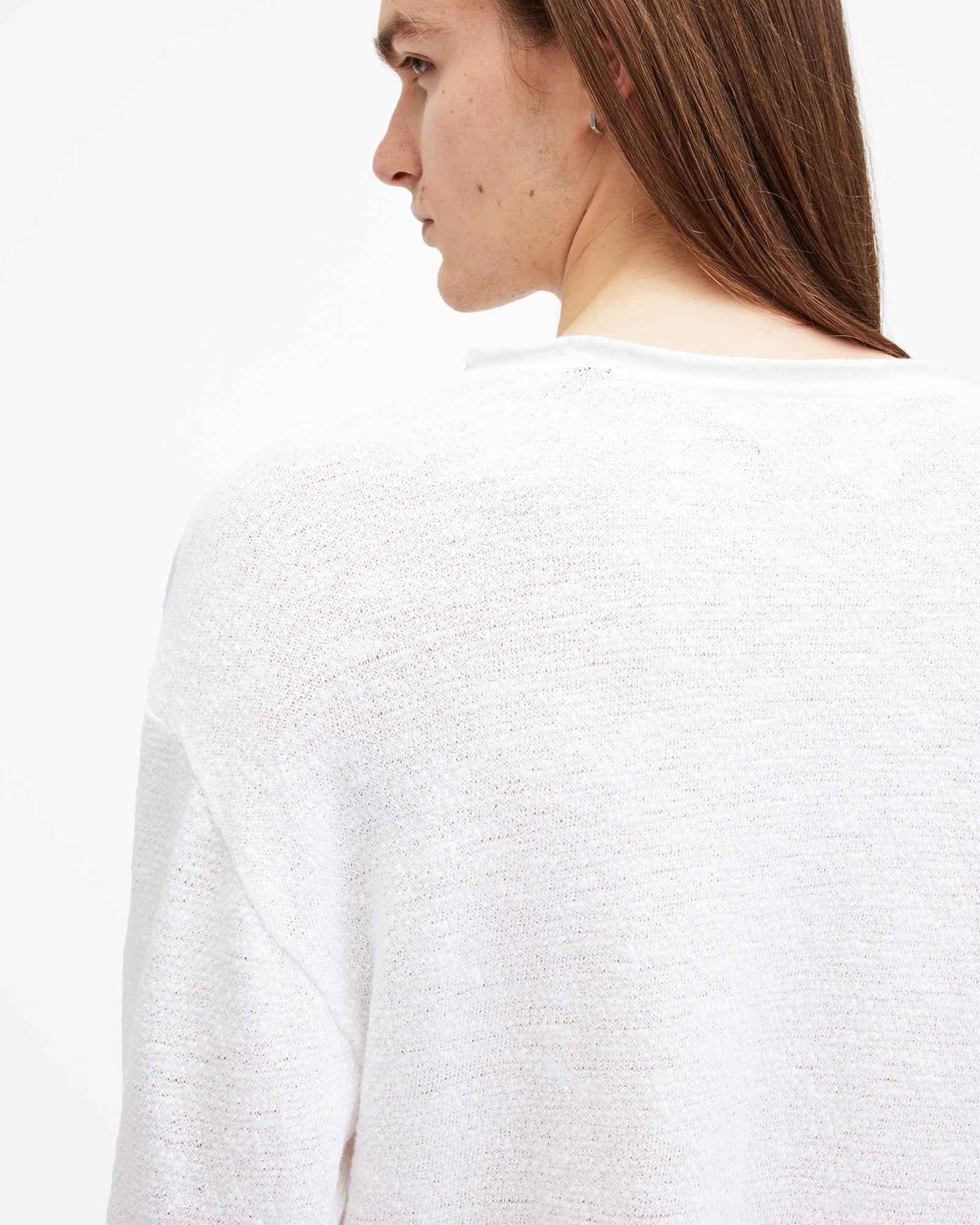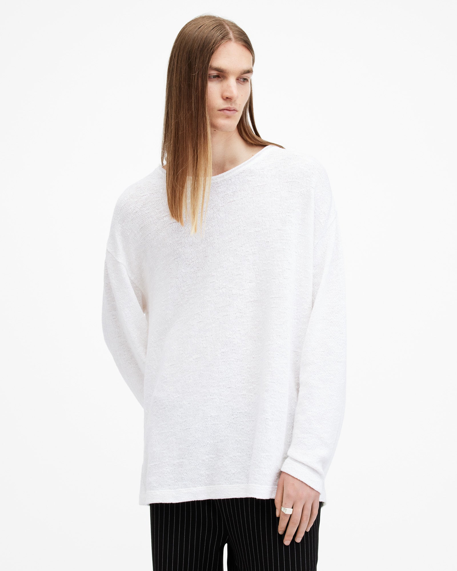 Basics you'll turn to again and again. The Sears is a long-sleeved tee crafted from an organic cotton-blend fabric with a luxury open-stitch slub texture. It's oversized with a round neck and finished with raw-edge detailing.