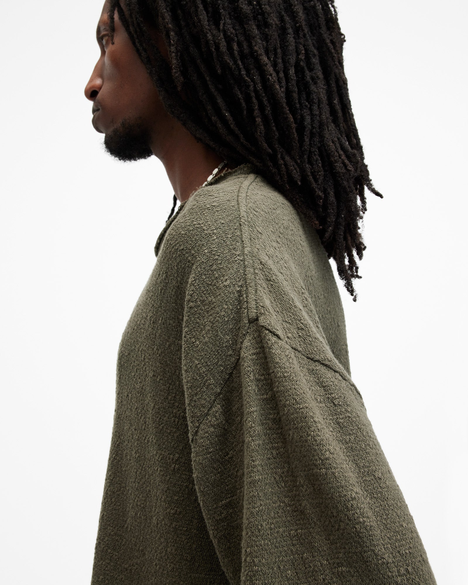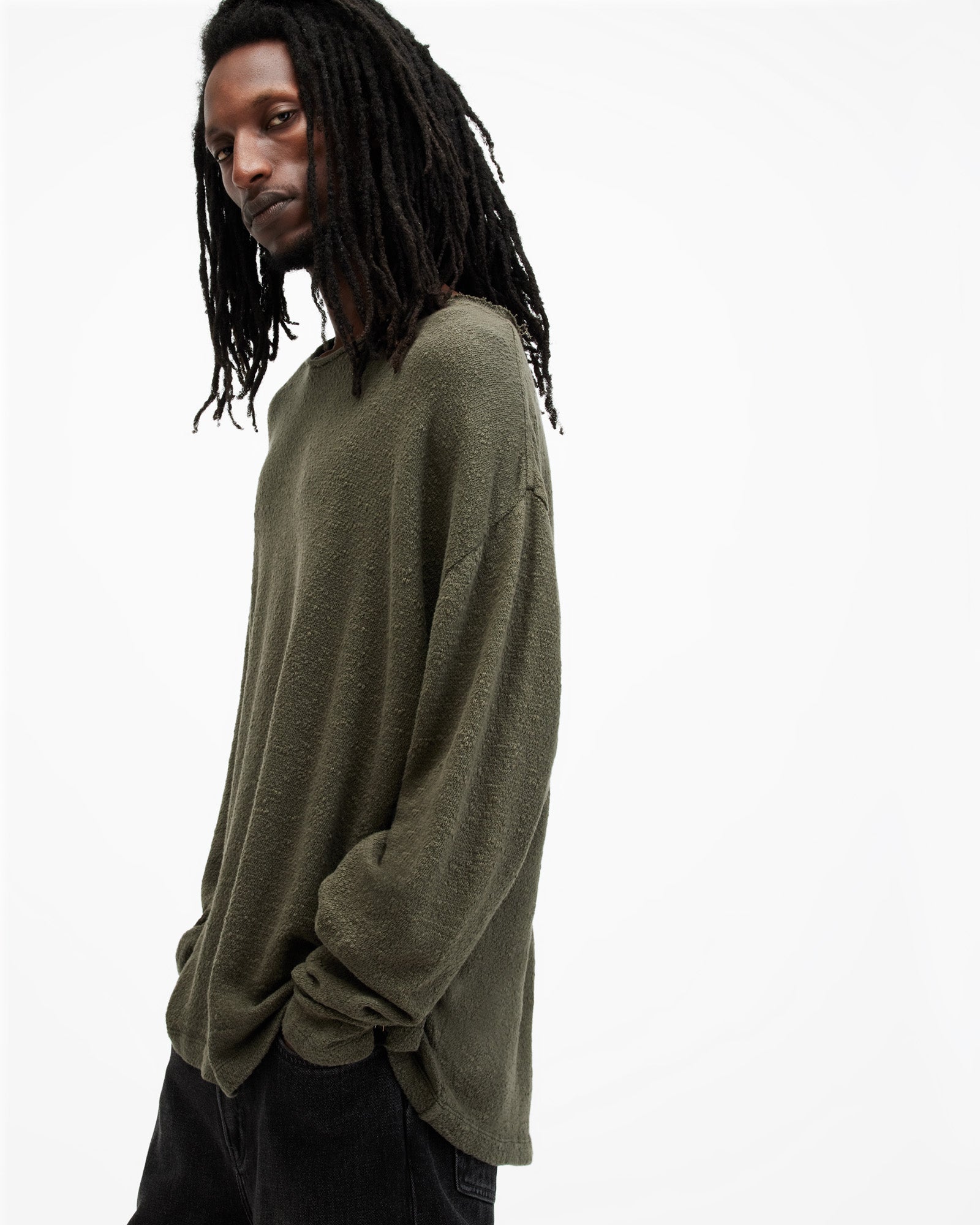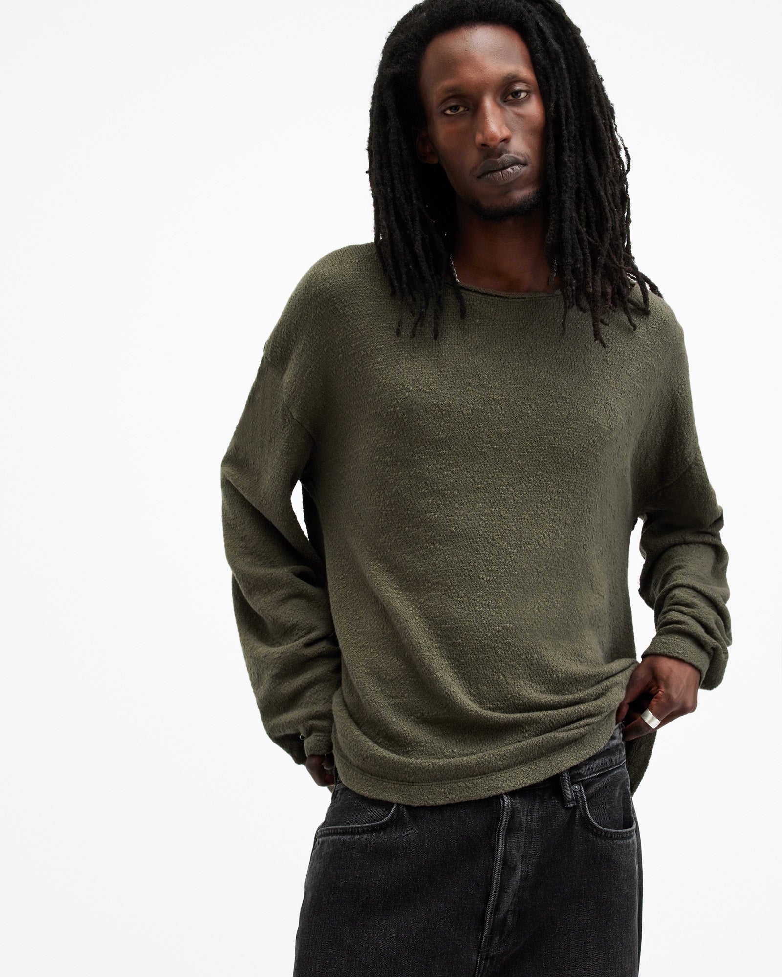 Basics you'll turn to again and again. The Sears is a long-sleeved tee crafted from an organic cotton-blend fabric with a luxury open-stitch slub texture. It's oversized with a round neck and finished with raw-edge detailing.
