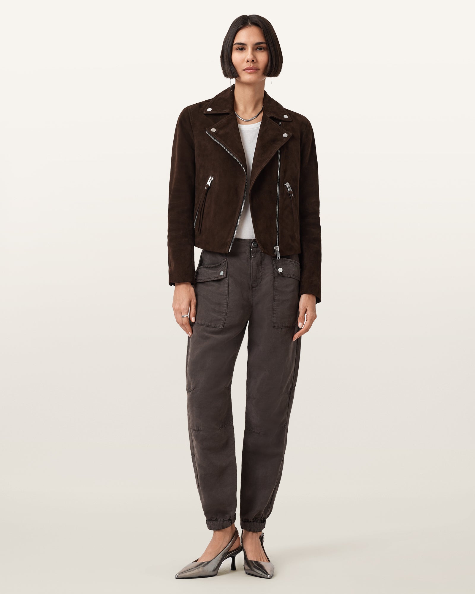 - Dart detailing at the knees