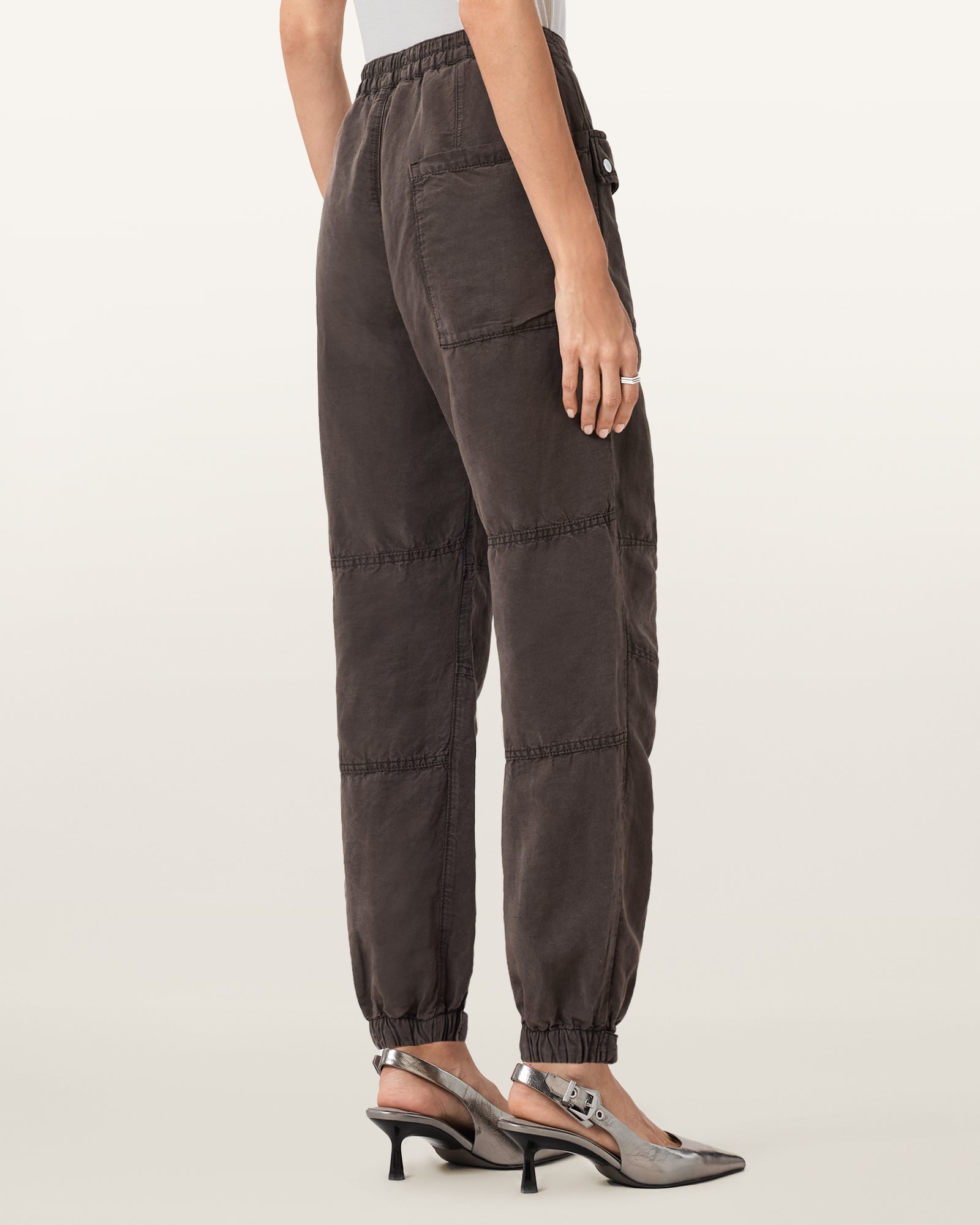We love cargos and we love our Val Trousers even more. Crafted from a soft linen-blend fabric, they are shaped to a tapered leg with elasticated ankles. Multiple pockets complete the look.