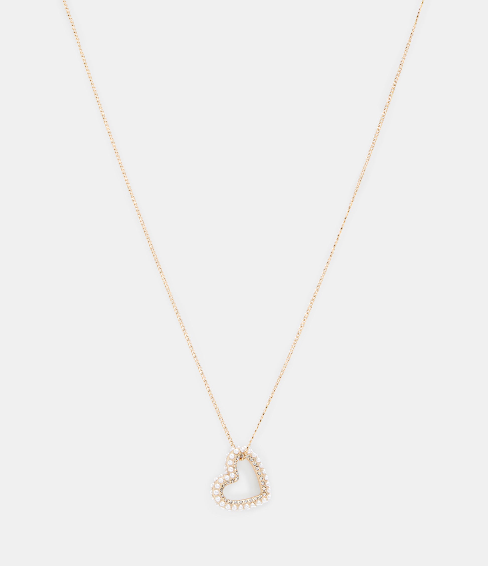 We're all heart. Add a touch of a romance with the Vida Necklace. Crafted from recycled metals, the curb chain features a heart shaped pendant embellished with pearl-look beads and sparkling crystals.