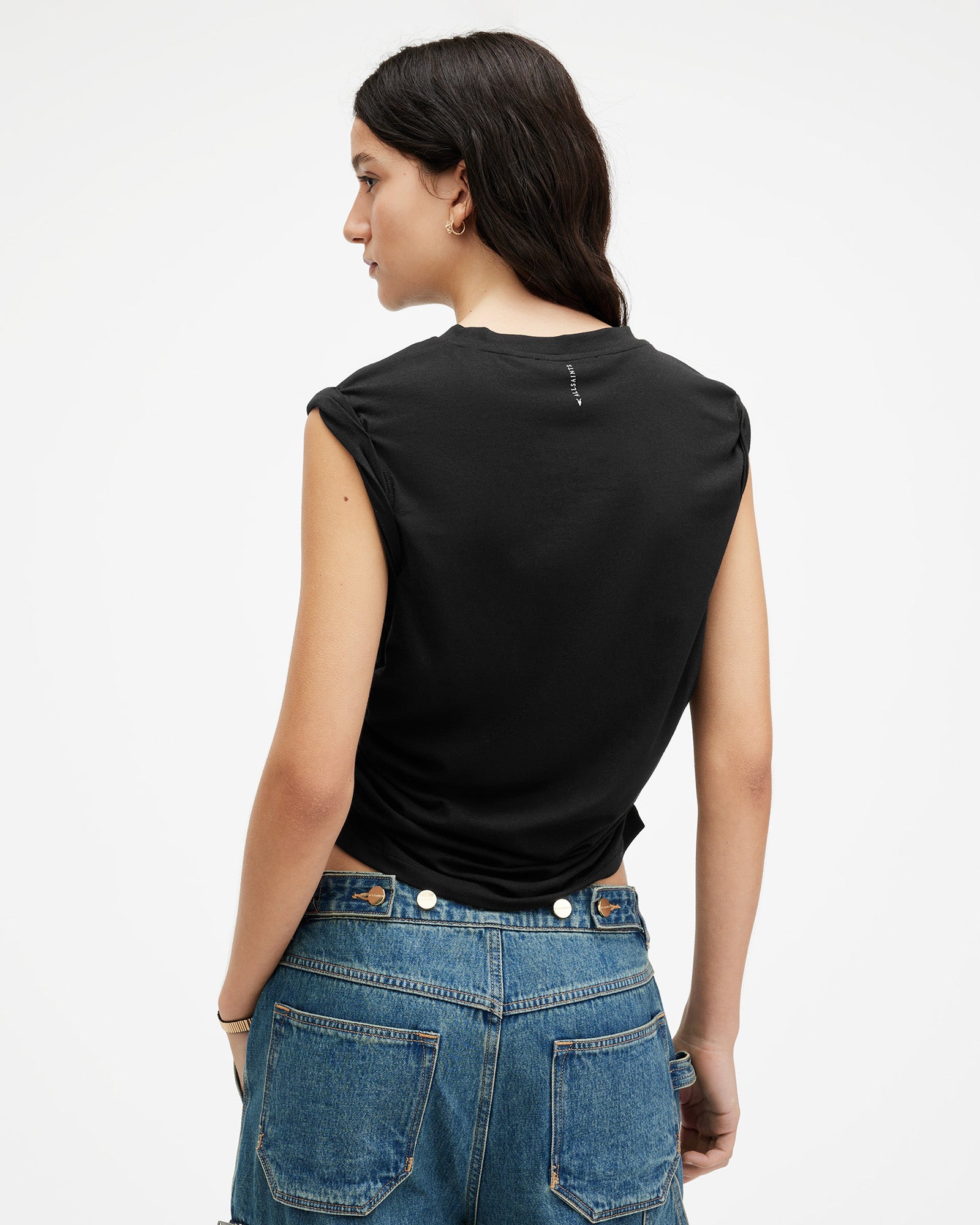 Based on classic AllSaints silhouettes, the West Tank Top is a refreshed option. Made from a soft and stretchy organic cotton blend fabric and shaped to a slim fit. The short sleeves have been rolled over and the seams gather at the side to accentuate your waist. Trust us, you'll always want this wardrobe staple on hand - it goes with everything.